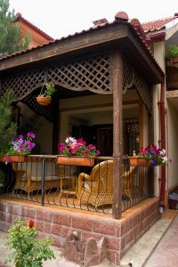 3-х комнатный номер в 2-х этажном коттедже. В номере: современная мебель, ванна с лечебной минеральной водой, джакузи, биде, камин, теплые полы, спутниковое ТВ, телефон, сейф, интернет, кухня, терраса с плетеной мебелью.