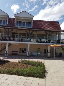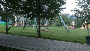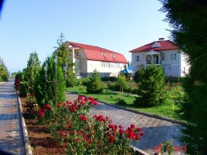Территория небольшая, но очень чистая и ухоженная. Территория озеленена цветами, газоном и различными кустами, также растут большие ели. На территории имеется большой и маленький бассейн, теннисный корт, бильярдная, конференц-зал и столовая. Возле ворот есть охраняемая стоянка