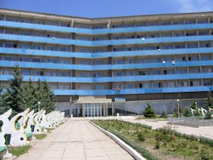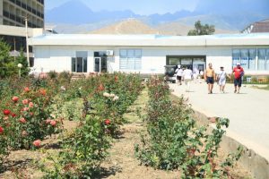 Санаторий «Голубой Иссык-Куль» в центре Чолпон-Аты — пожалуй, самый известный из «старожилов» побережья. Более полувека он принимает гостей, круглый год приезжающих на лечение и отдых со всех уголков бывшего Советского Союза.